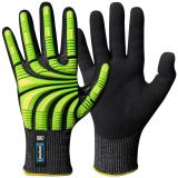 Ofodrad syntethandske, Latexfoam, 3/4 doppad, Polyester, Skummad greppyta, Cat. II, Grön varsel, svart, Varselfärg, Vattenavvisande, för allroundarbeten.
