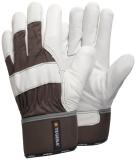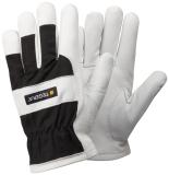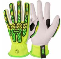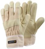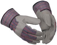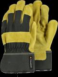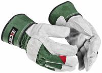 Läderhandske, Ofodrad, 1,2-1,4 mm, Nötnarv av högsta kvalitet, Bomull, Cat. II, Grå, Gul, Förstärkta fingrar och tumme, Kromfri, Resår 180°, för allroundarbeten.
