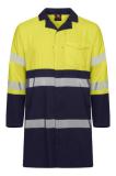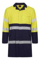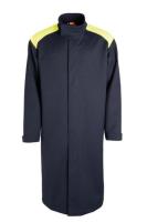 Flamskyddad besökslångrock med "VISITOR"-brodyr på bröst och rygg, dolda tryckknappar framtill, 2 bröstfickor och framfickor, innerficka. Material: 911: Cantex Pro 145, 160 g/m², EN 61482-1-2 CL.1, LOI: 26,7%, 910: Fluorescerande, Cantex 180, 210 g/m², EN 61482-1-2 CL.1, LOI: 26,7%.