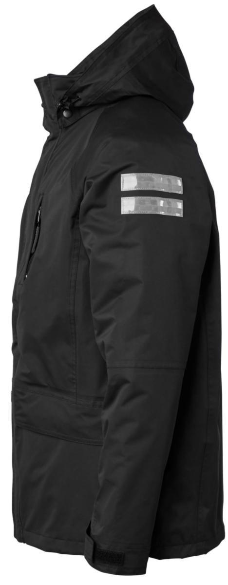 Jacka 3 i 1. Vind och vattentät med tejpade sömmar. Innerjackan är avtagbar i microfleece. Går bra att använda var och en för sig eller tillsammans. Avtagbar huva. Reflexdetaljer för bättre synbarhet. Reglerbart ärmslut. Två bröstfickor med dragkedja, två sidfickor med lock och dragkedja på jackans nedre del. Innerficka. Dragsko i midja och nederkant. Vattenpelare 10000 mm, andasfunktion 5000g/m2. Material: 100% nylon, 200g/m2.