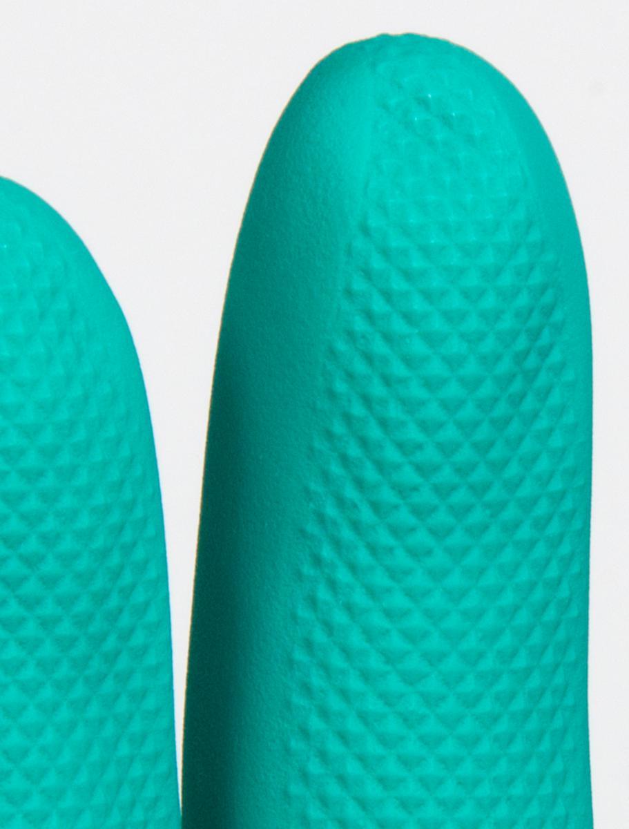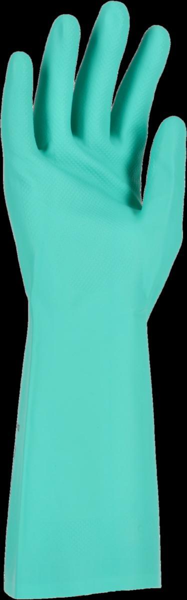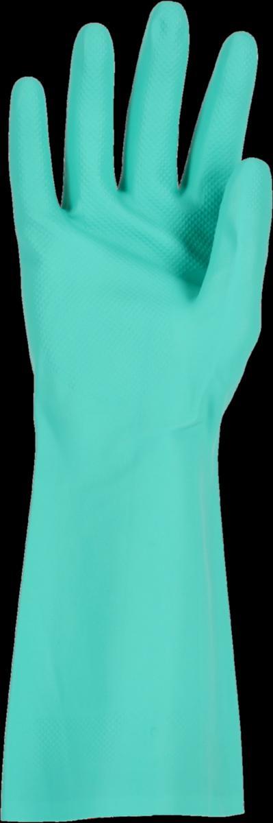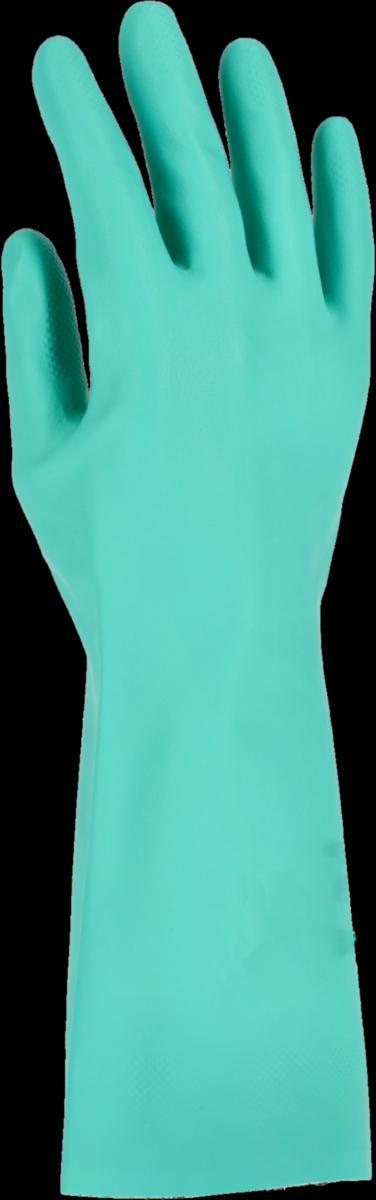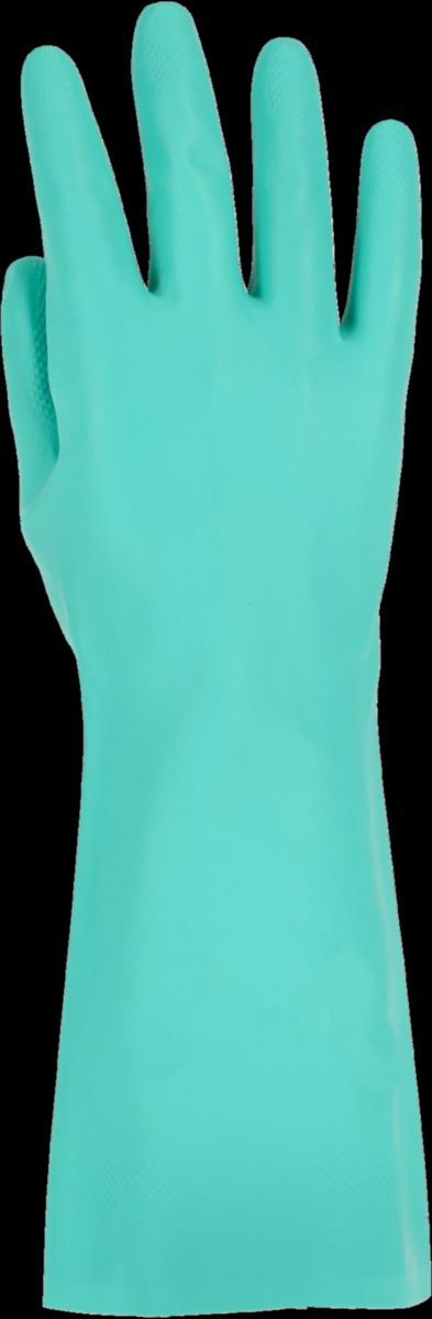 Kemikalieskyddshandske, 0,38 mm nitril, diamant greppmönster, flossad, Cat. III, latexfri, för allroundarbeten.