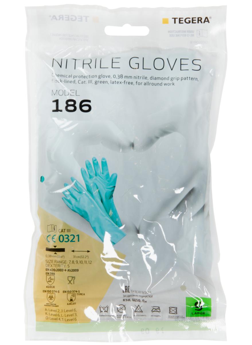 HANDSKE TEGERA 186 NITRIL GRÖN FLOSSAD STL 8