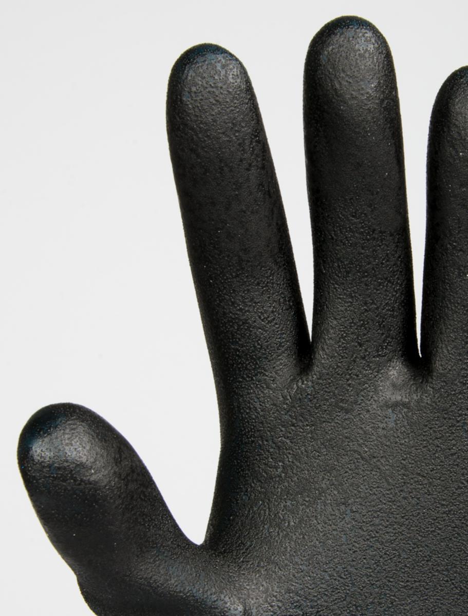 Kemikalieskyddshandske, Nitril, PVC (Vinyl), Nylon, 18 gg, Sömlöst, Granulerad, Cat. III, Svart, blå, Ftalatfri, Olje- och fettresistent, Godkänd för mathantering med undantag för feta livsmedel, för allroundarbeten.