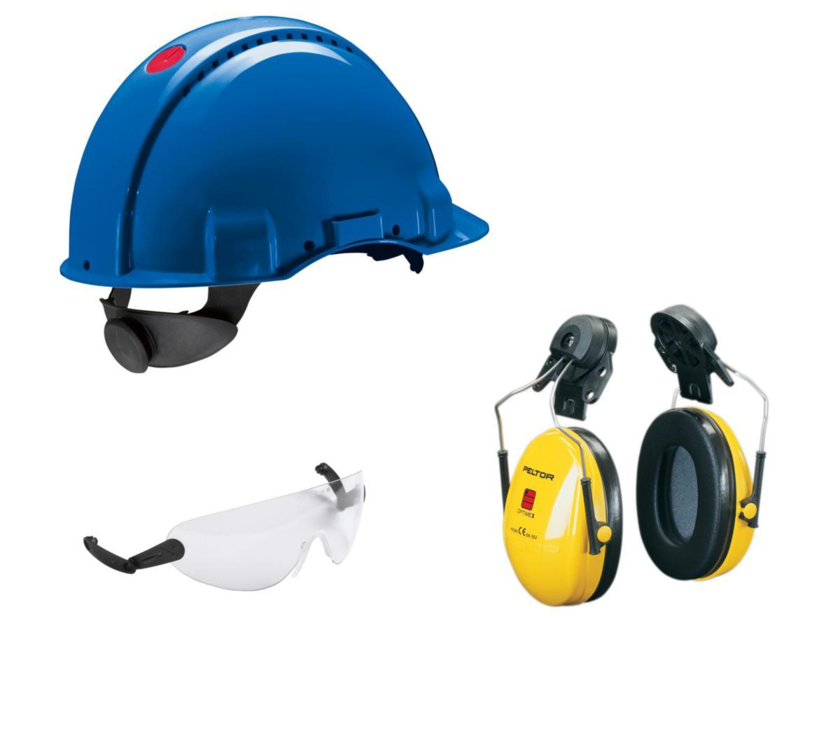 SKYDDSHJÄLM PELTOR G3000 BLÅ M+HAKBGLASÖGON+HÖRSELKÅPA
