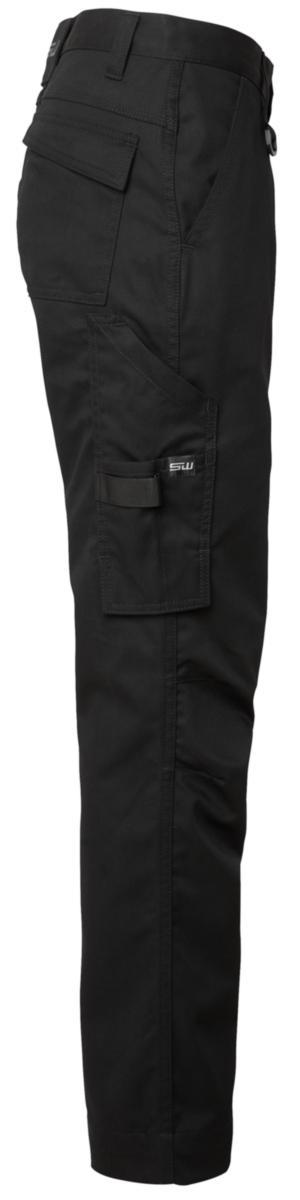 Servicebyxa i dampassform passande för många olika typer av yrken. Gjord i slitstarkt material med mekanisk stretch. Byxan har generöst med rymliga fickor, tumstocksficka och benficka med mobilficka. Förlängningsmöjlighet (5 cm) i benslut. Material: 65% polyester, 35% bomull, 265 g/m². Tvättråd: 60°.