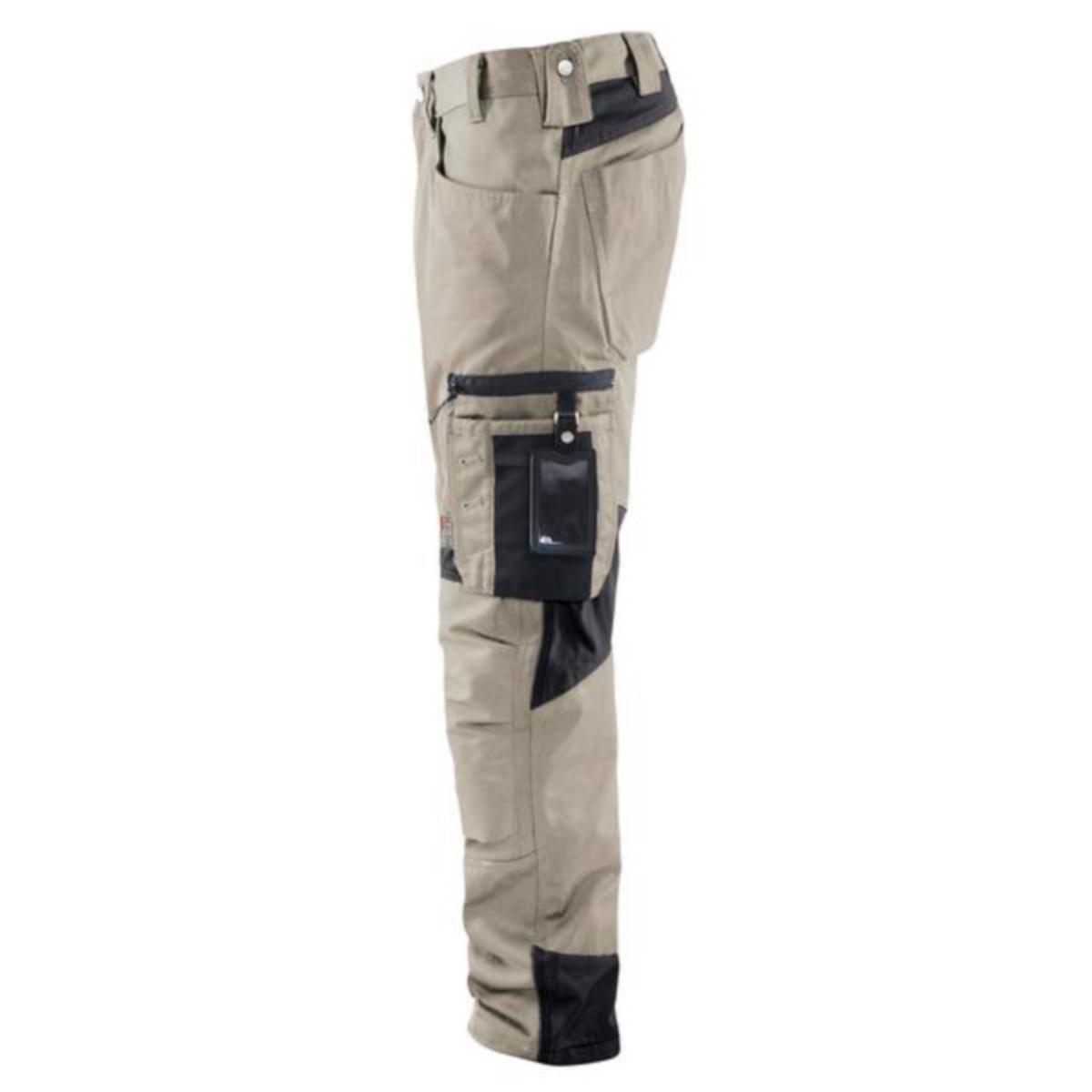 Funktionell och bekväm hantverksbyxa med lättåtkomliga fickor såsom telefonficka i stretchmaterial som passar de flesta mobiler. Knäskyddsficka i stretch CORDURA® för maximal passform och slitstyrka. Två bakfickor med bälg och hällor för hammarhållare samt förstärkt tumstocksficka med pennficka och knivhållare. Förböjda ben ger bra passform. Material: 65% polyester, 35% bomull, twill, 300g/m². Tvättråd: 60 °C.