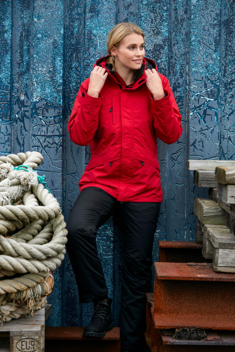 Vind- och vattentät 3-1-lagersjacka med dampassform där innerjackan är avtagbar och i fodrad microfleece. Går bra att använda var och en för sig eller tillsammans. Avtagbar huva. Bröstficka och sidfickor med dragkedja. Sömmarna är tejpade. Båda jackor har dragkedja i fodret, vilket underlättar profilering. Jackan har innerficka. Andningsförmåga 5000g/m2/24h. Material: 100% nylon.