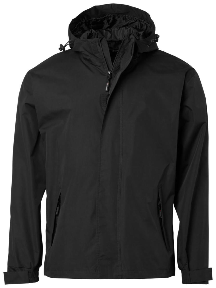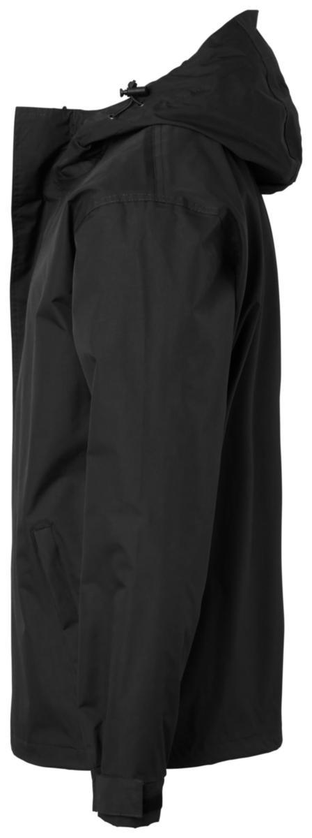Vind och vattentät jacka med tejpade sömmar. God andningsförmåga. Hel dragkedja som går ända upp i krage med kedjeskydd. Slå över dragkedja med kardborreknäpping. Två framfickor med dragkedja. en innerficka. Justerbar huva. Reglerbart ärmslut. Dragsko i nederkant. Vattenpelare 8000mm, andasfunktion 4000g/m². Material: 100% polyamid, 150g/m².