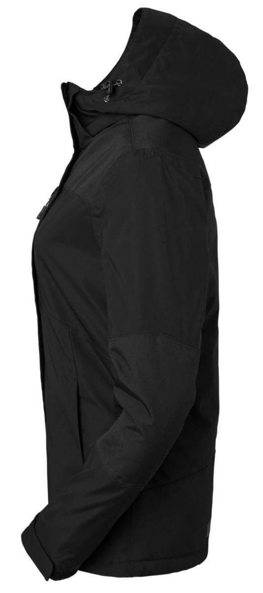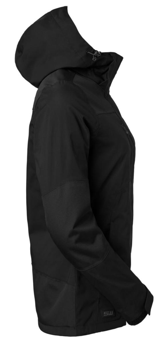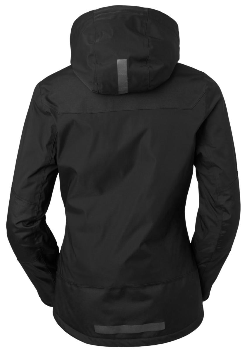 Fodrad vind- och vattenavvisande jacka med dampassform. Tejpade sömmar och god andningsförmåga. Förstärkta detaljer på utsatta partier som axlar, armbågar och insida ärm. Jackan har justerbara ärmslut och avtagbar huva. Reflex bak nedtill samt på huvan. Rymliga fickor och zip-pullers med invävd reflextråd på samtliga dragkedjor. Invändiga muddar i stretchigt funktionstyg. SW gummibadge på jackans nederkant. Material: 100% polyester, förstärkta partier 100% nylon, foder 100% polyester Andningsförmåga 5.000g/m2/24h Vattenpelare 10.000mm. 280 g/m². Tvättråd: 40°.
