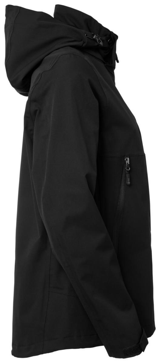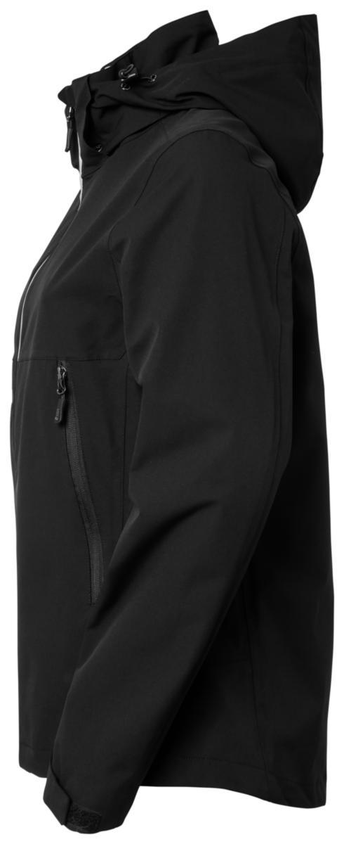 Vind- och vattenavvisande skaljacka i dampassform med tejpade sömmar. Vattentät dragkedja framtill med praktisk reflexdetalj. Jackan är mjuk och följsam med mekanisk stretch i tyget, vilket gör plagget väldigt behagligt att bära. Fodret är en kombination av polyester mesh samt slät polyester. Avtagbar huva med dragkedja och tryckknappar. Elastiska dragskor med stoppers i såväl huva som i jackans nederkant. Flärp med kardborre för justering av ärmslut. Två rymliga sidfickor med dragkedja samt en innerficka med dragkedja. Material: 100% Polyester. Tvättråd: 40°C.