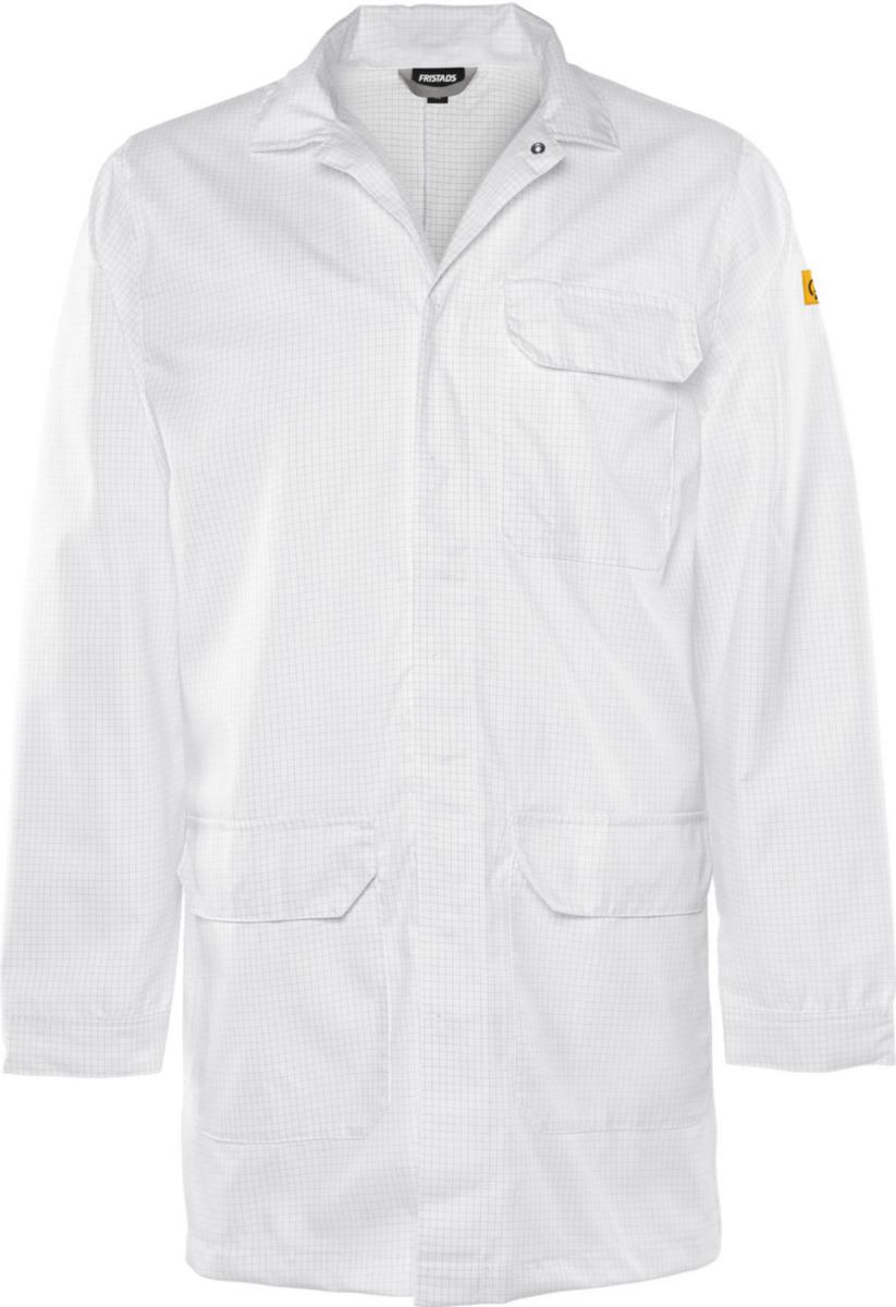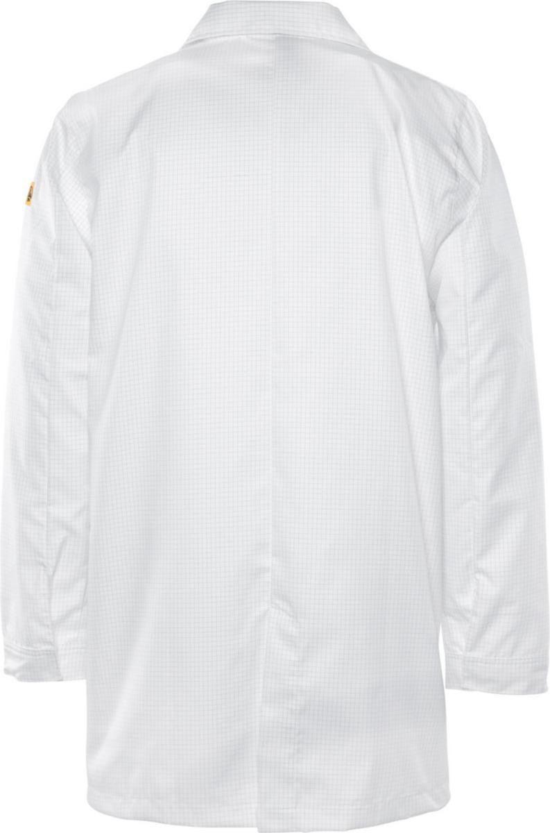 ESD-rock i lätt och bekvämt material, som minskar risken för elektrostatisk uppaddning. Anpassad för personer som arbetar i skyddade områden – Electrostatic Protected Areas (EPA). Dolda tryckknappar, Bröstficka med lock och pennficka, 2 framfickor med lock, Slits bak, Reglerbart ärmslut med tryckknapp, Testad och godkänd enligt IEC 61340, OEKO-TEX®-certifierad. Material: 67% polyester, 31% bomull, 2% konduktiva fibrer, 192 g/m².