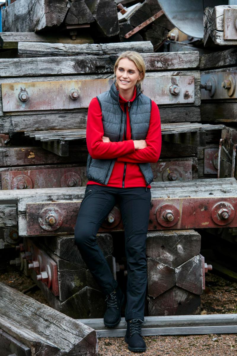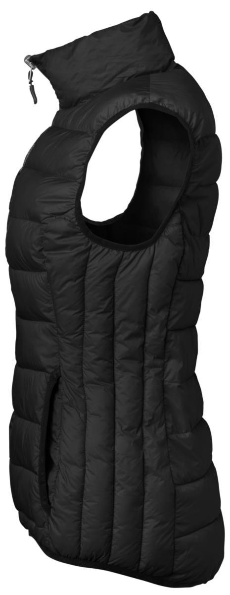 Lättviktsväst med fuskdun och figurnära passform som kan användas ensam eller enkelt fästas i 623 Alma parkas och 635 Alma skaljacka och kan då användas som värmande bålfoder. Dunet hålls på plats genom västens smala kanaler. Två praktiska sidofickor. Elastiska band med heatprint i nederkant, på ärmhål och sidfickor. Gummibadge i nederkant. Västen levereras med svarta zipperpullers som går att byta vid behov. En påse med extra pullers i västens färg medföljer (gäller ej färg 98 och 99) till alla dragkedjor och kan även fästas på parkasen och skaljackan.