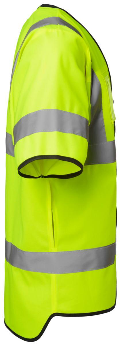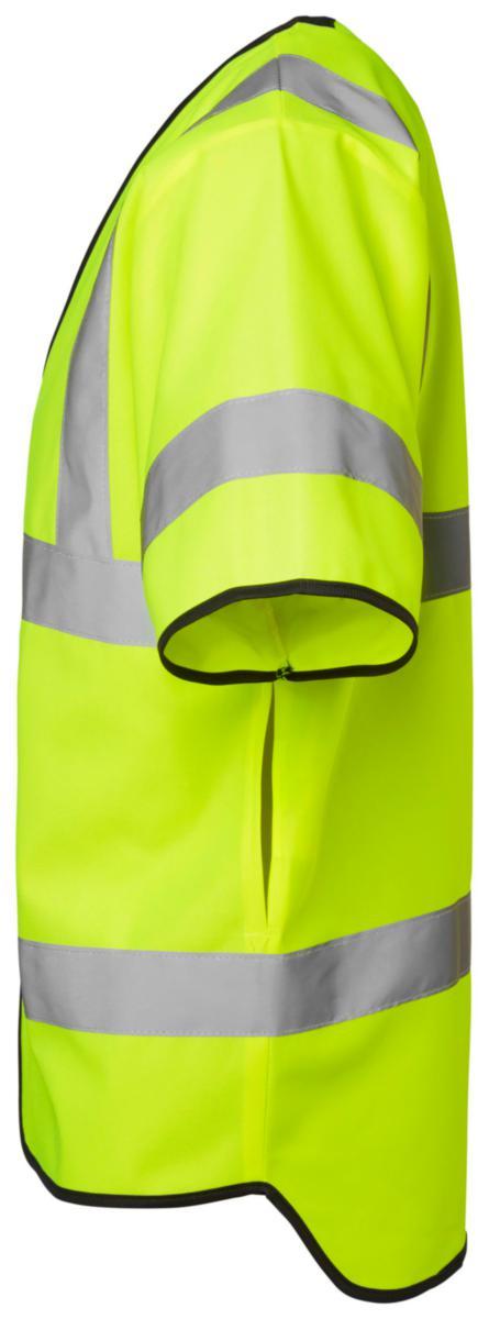 Varselväst med dragkedja. Infällbar ID-korts ficka. Sidöppningar för att komma åt fickor. Material: 100% polyester.