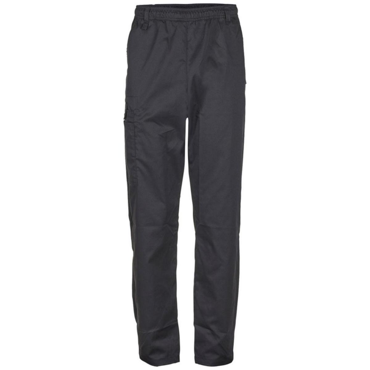 Byxa med hel resår och dragsko. Hällor. Sidfickor. Benficka med telefonficka som stängs med knapp och tamp. Nyckelhälla högger sida. Justerbart benslut med tryckknappar. Innerbenslängd storlek M: 83 cm. Oeko-Tex®. Material; 65% polyester 35% bomull. 195 g/m2.
