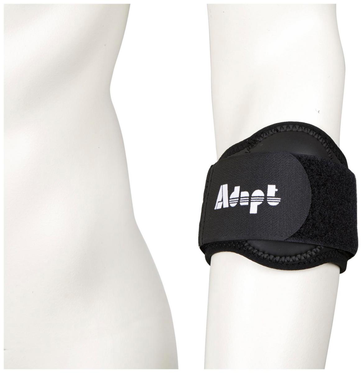 Armbågsskydd som används både för att behandla och förebygga tennisarmbåge. Skyddet kommer åt den ömmande armbågssenan med punkt-tryck. Skyddet kan användas på både höger och vänster arm. Material: Neoprene med polstrad insida för bättre fukttransport.
