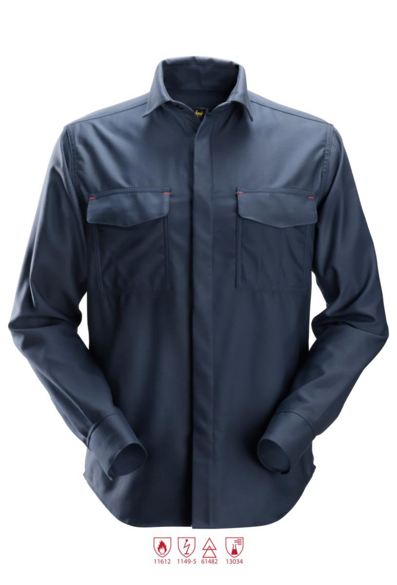 Skyddande och slitstark långärmad skjorta som skyddar mot värme och lågor, statisk elektricitet och elektrisk ljusbåge. Slitstarkt och smidigt tyg för långvarigt skydd och komfort som varar hela dagen. Arc Rating: ATPV, 8,5 cal/cm2, klass 1 (4kA) och HAF: 79,4 %. Material: Skaltyg: 55 % Protal, 44 % bomull, 1 % antistatisk, 200 g/m2.
