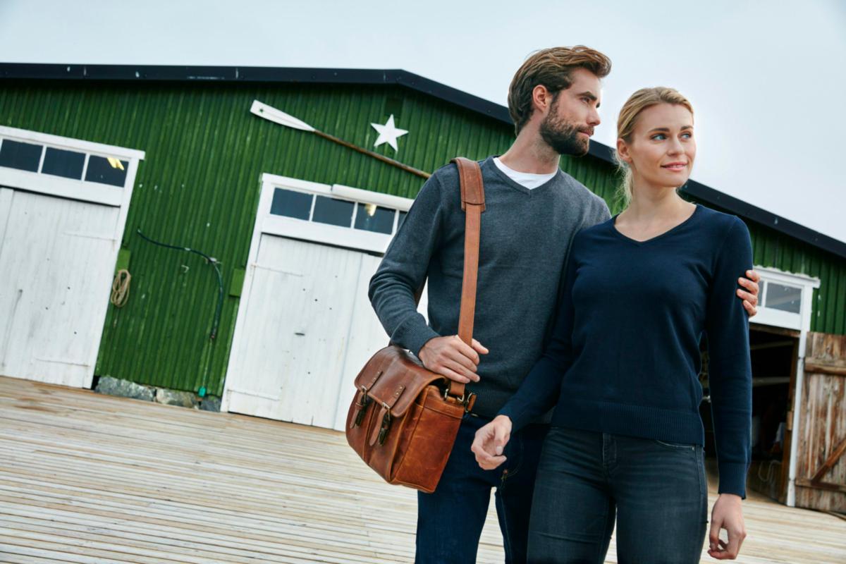 Finstickad tröja med v-ringad, ribbad halskant. Nederkant och ärmslut i 2x2 ribb med elastan som håller passformen. Material: 100% bomull.