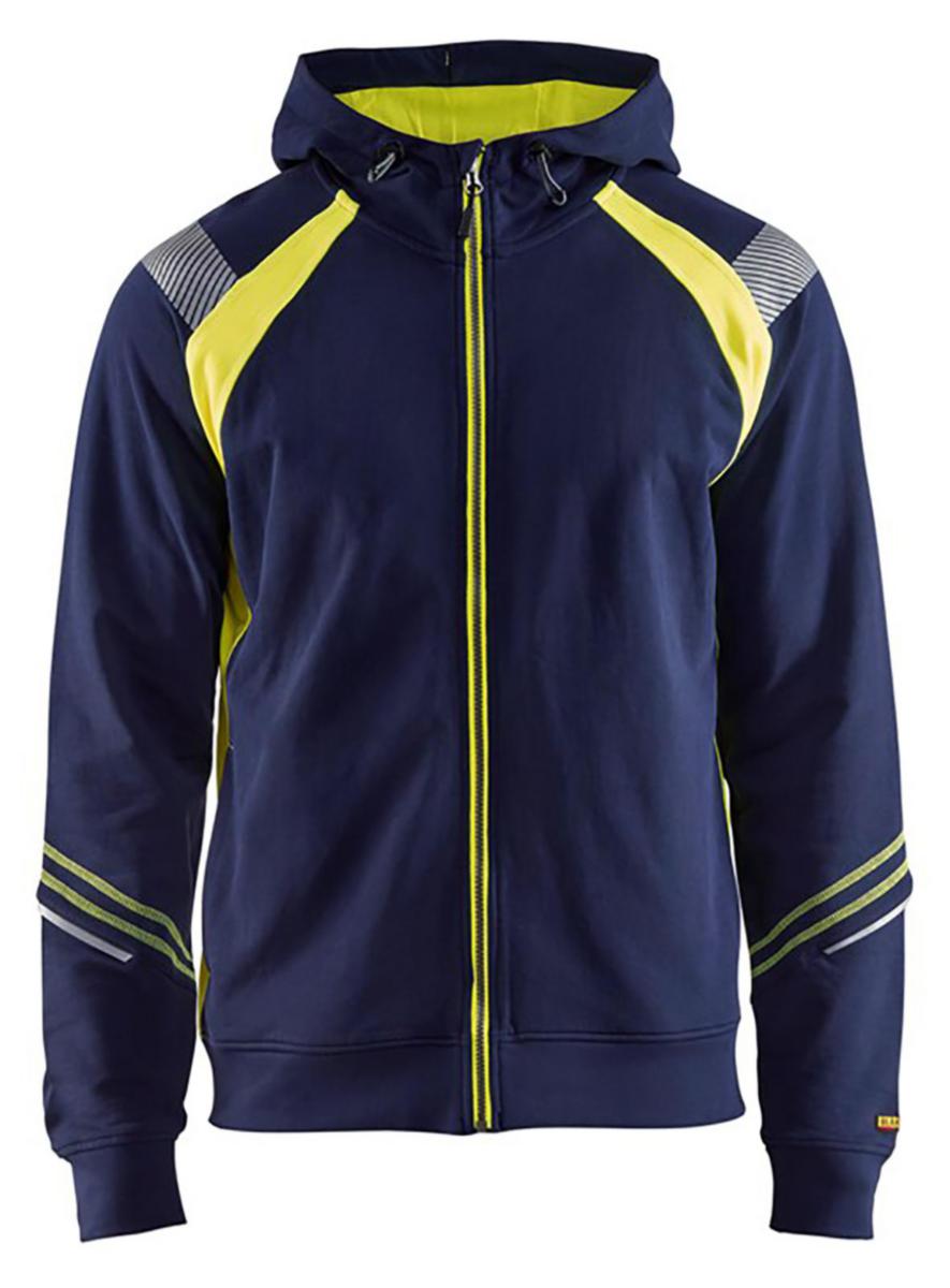 Mjuk och bekväm luvtröja som är tillverkad i bomull. Den har skurna reflexdetaljer och paneler i varsel för ökad synbarhet, mudd nertill och på ärm samt fickor med invändig telefonficka med dragkedja. Material: 100% bomull, french terry, 320 g/m².