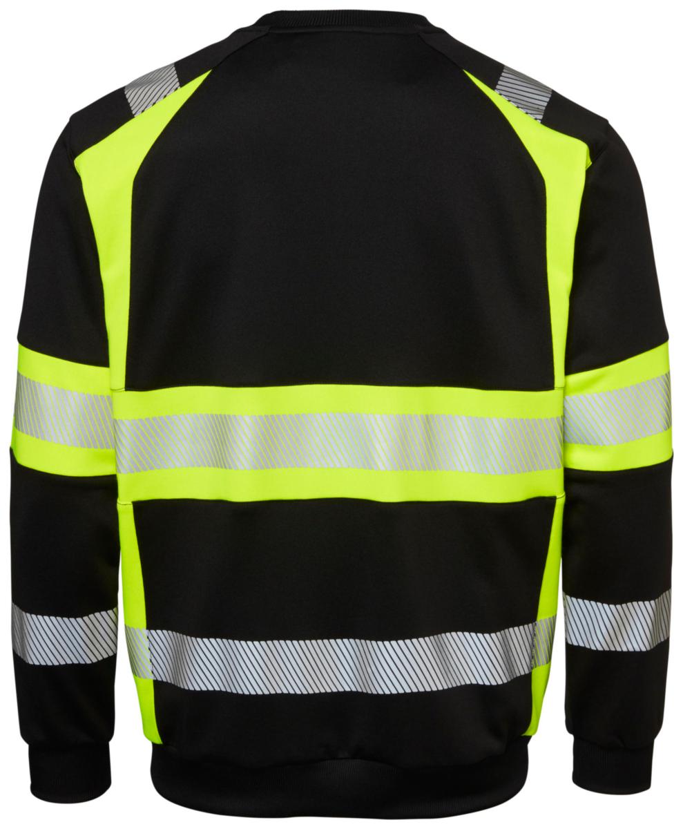 Varsel sweatshirt i klass 1 med segmenterad reflex, rund hals, och mudd i nederkant och ärmslut. Perfekt för hög synlighet och komfort i arbetsmiljöer.