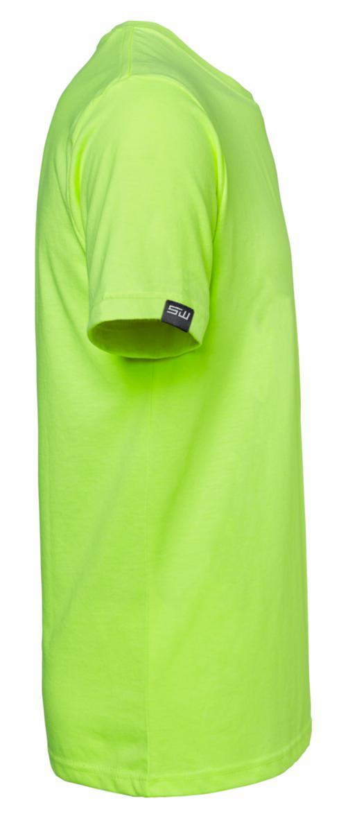 Funktionell t-shirt i modern passform för både arbete och fritid. Tillverkad i single jersey. Elastan i halsribben för ökad hållfasthet. Fluorescerande färg med förhöjd synbarhet. Material: 65% polyester, 35% bomull, 180 g/m². Tvättråd: 60°.
