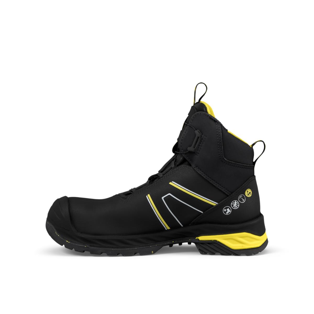 Mellanhög skyddskänga med sidoplacerad BOA-snörning, konstruerad för tuffa miljöer. Den har en vattenbeständig ovandel i Super8-läder och en PU/nitrilgummisula med hög slitstyrka och grepp. Energy Sense-häldämpningen ger komfort hela dagen. Lämplig för bygg, underhåll och industriarbete i krävande miljöer.