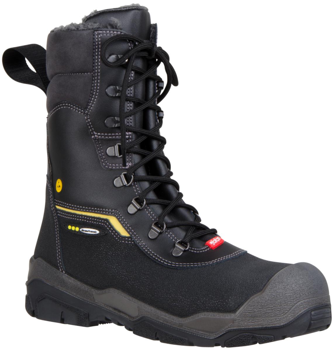 Vinterfodrad skyddskänga med dragkedja, tåhätta i aluminium, mjukt spiktrampsskydd samt värmebeständig slitsula. Avancerat foder i tre lager. Innersula med extra isolering samt dubbla stötdämpningszoner i Poron XRD. Standard: EN ISO 20345:S3 HRO CI SRC.
