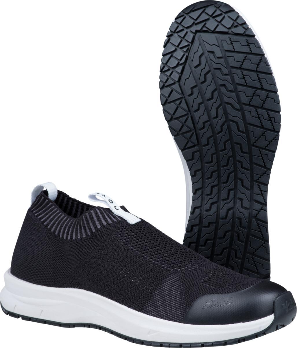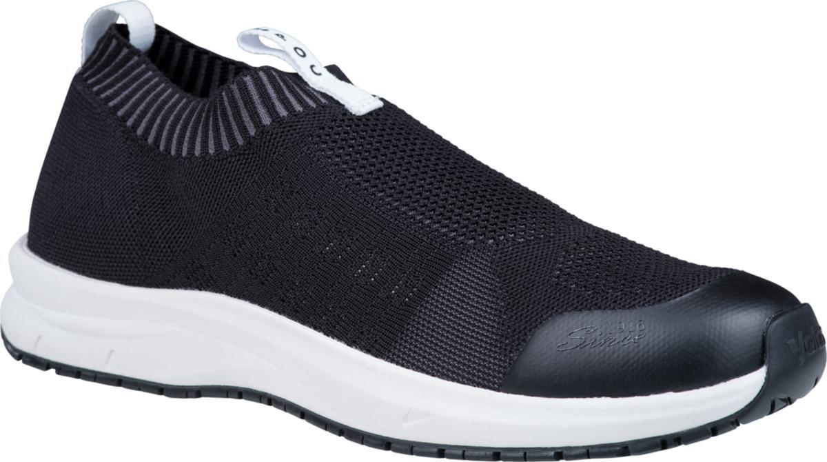 JALAS SpOc 5312, En mycket bekväm sko med en slip-on sock-konstruktion. Ovandelen är stickad i ett ultralätt material, sömlös och exceptionellt luftig, vilket gör den riktigt bekväm, särskilt i varmare förhållanden. Skon ger foten bra stöd samtidigt, som den är mjuk. Dessutom är skorna till största delen tillverkade av återvunna och bio-baserade material, vilket bidrar till bevarandet av naturresurser.