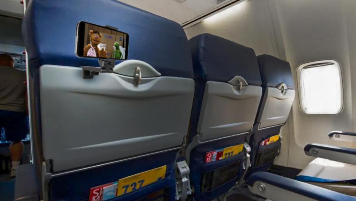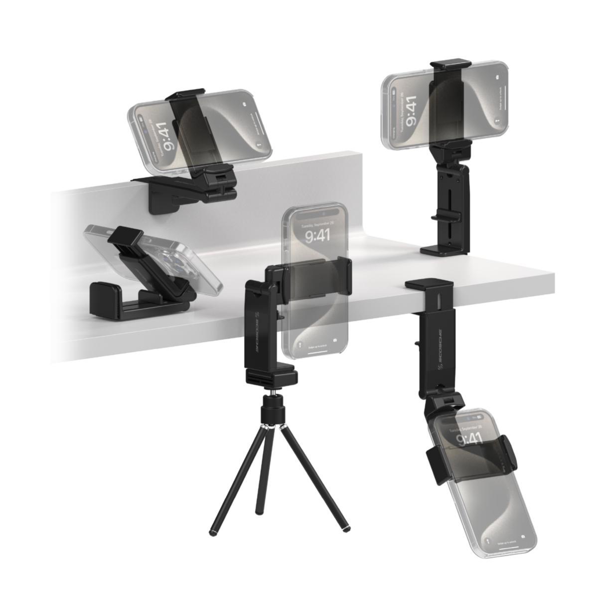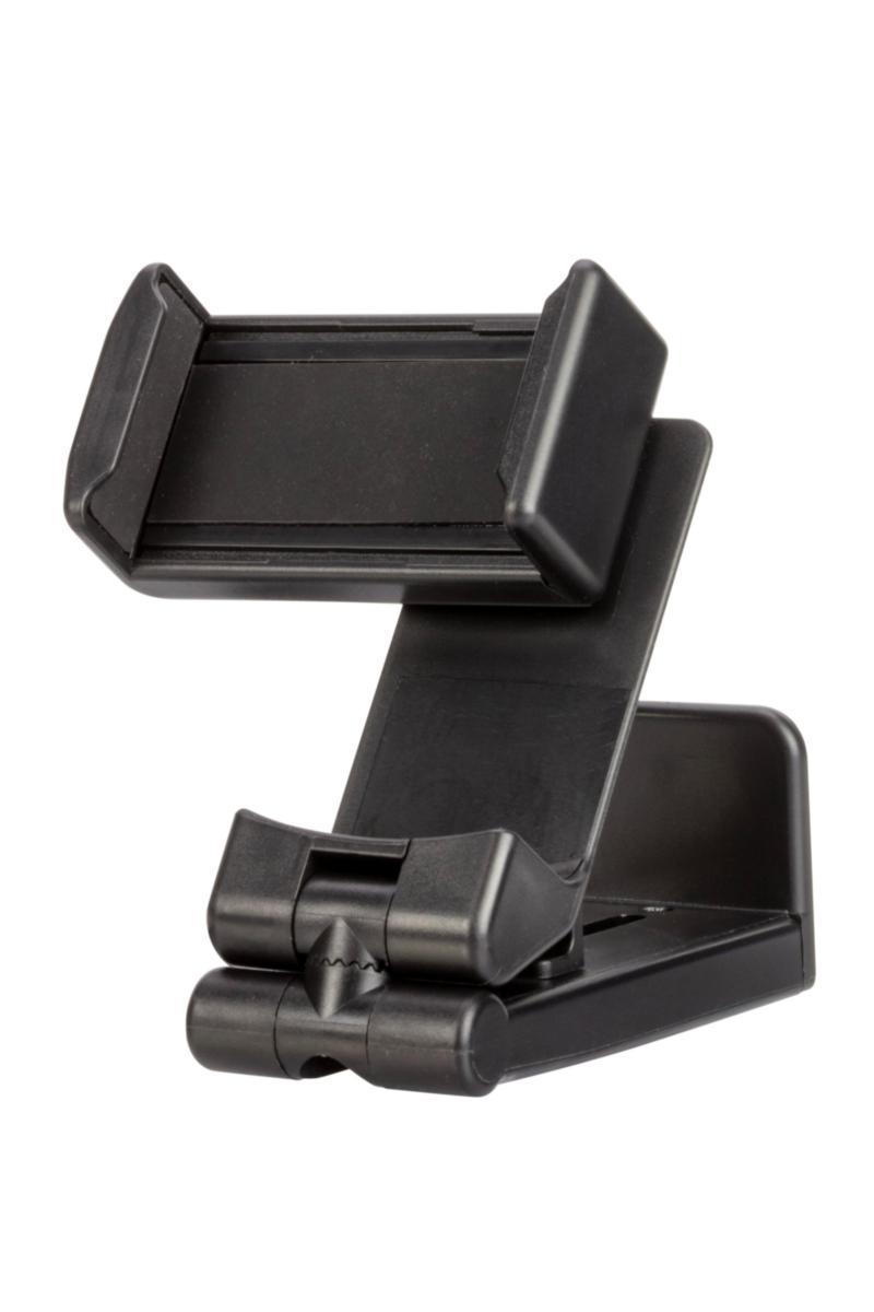 Smidig telefonhållare - den justerbara basen fästs säkert på ett flygplansbord, resväska, köksskåp, matbord, skrivbord, träningsutrustning och mer upp till 3,8 cm tjockt.